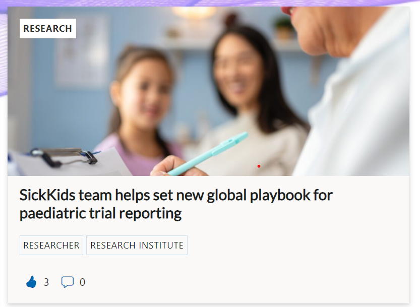 Updated clinical trial reporting guidelines include patient voices to improve trial utility and transparency (sickkids.ca; December 13, 2022)