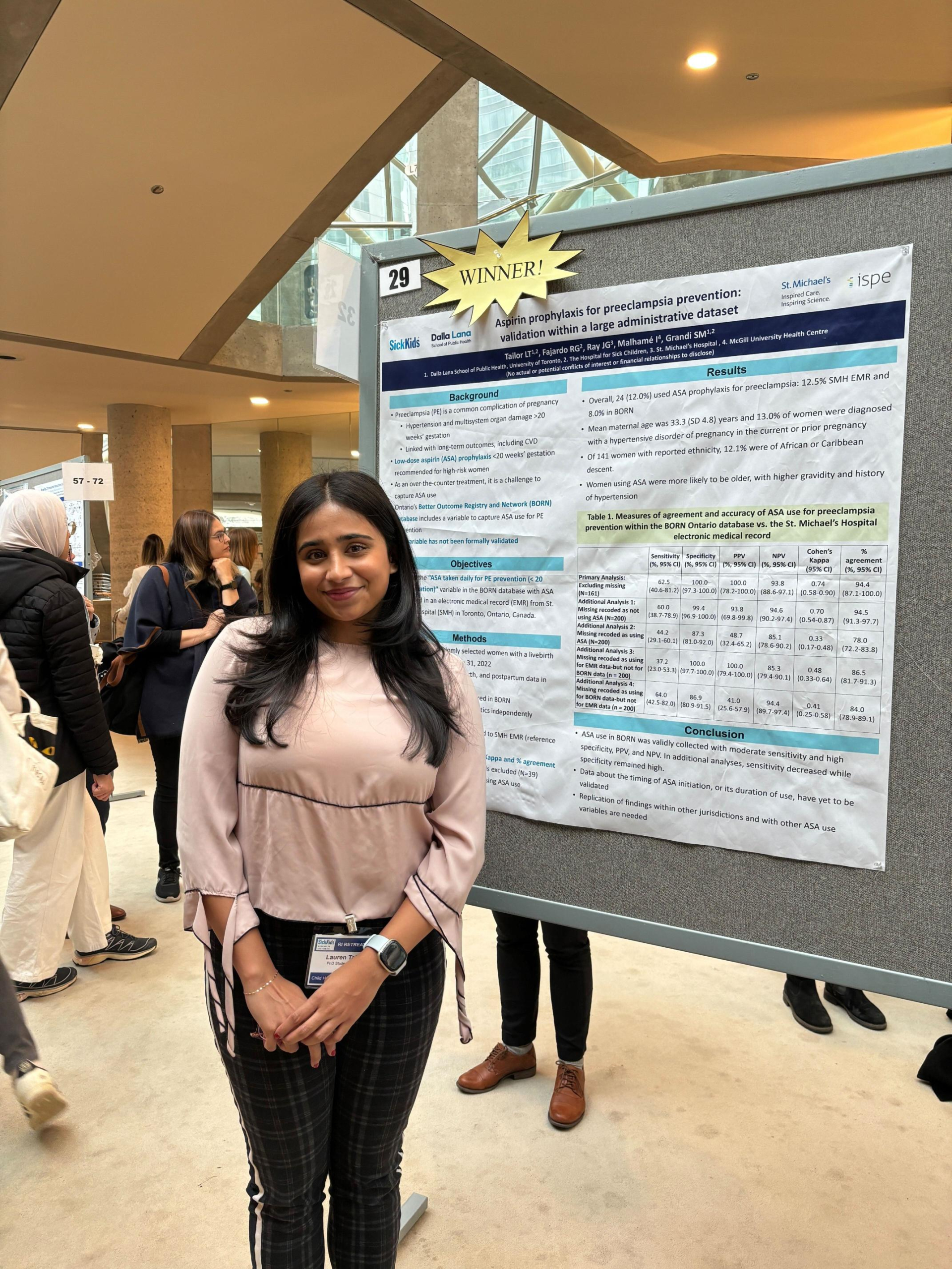 Sabrina is pictured presenting her poster entitled “Patterns of aspirin use for preeclampsia prevention in an ethically diverse population-based cohort of women in Canada” – great work Sabrina!
